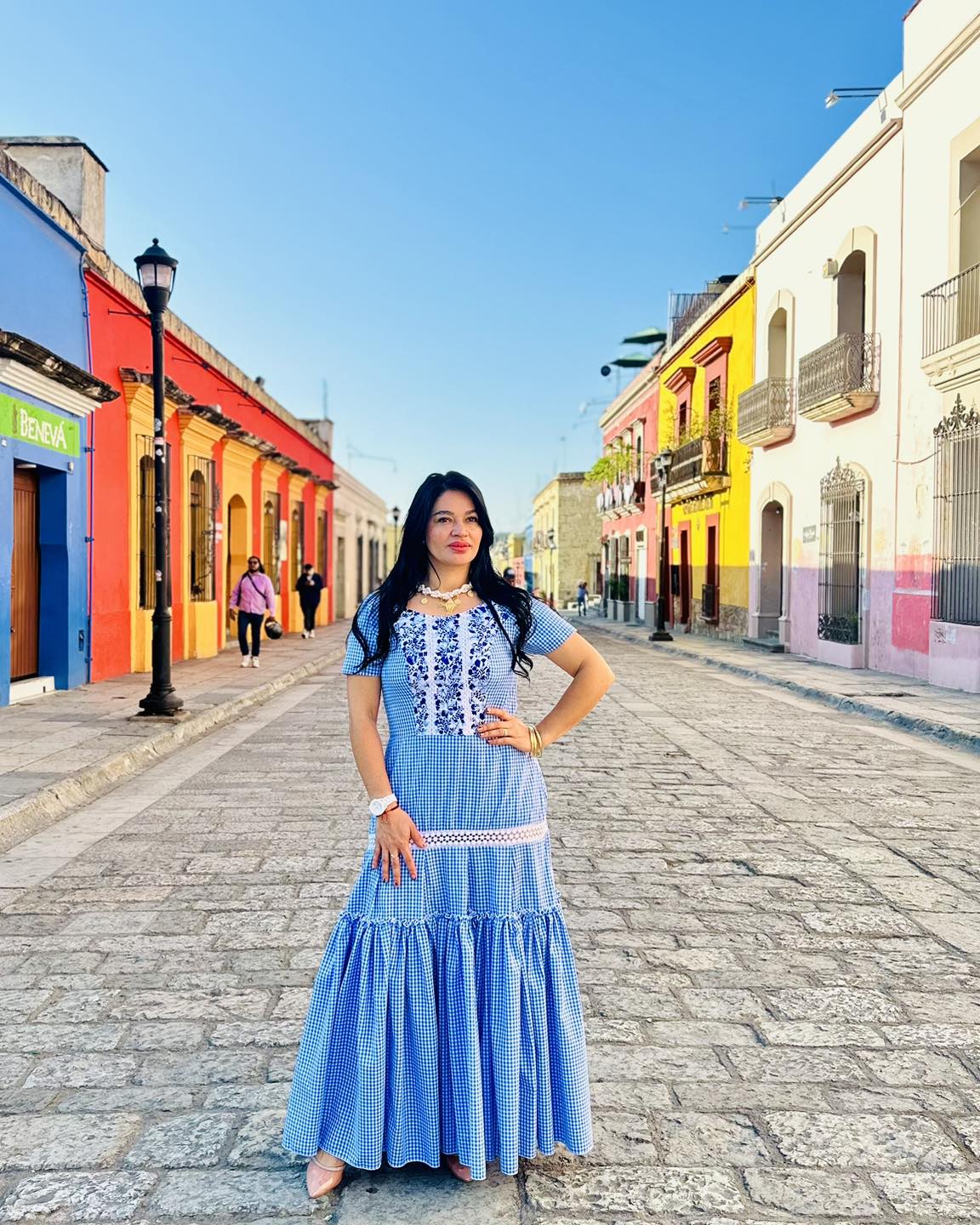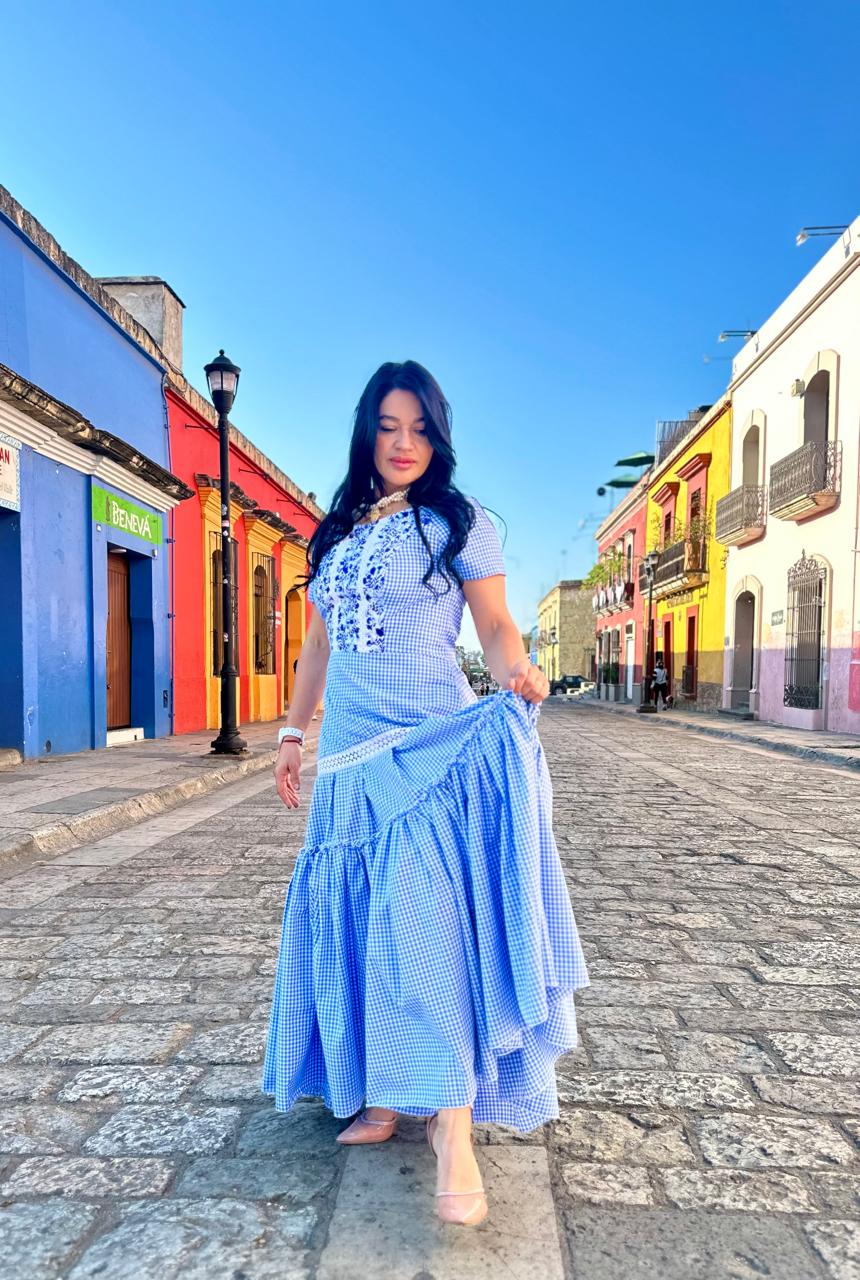 Vestido de algodón casual, con bordado de San Antonino ocotlán, y un bello encaje de algodón, cierre en la espalda.