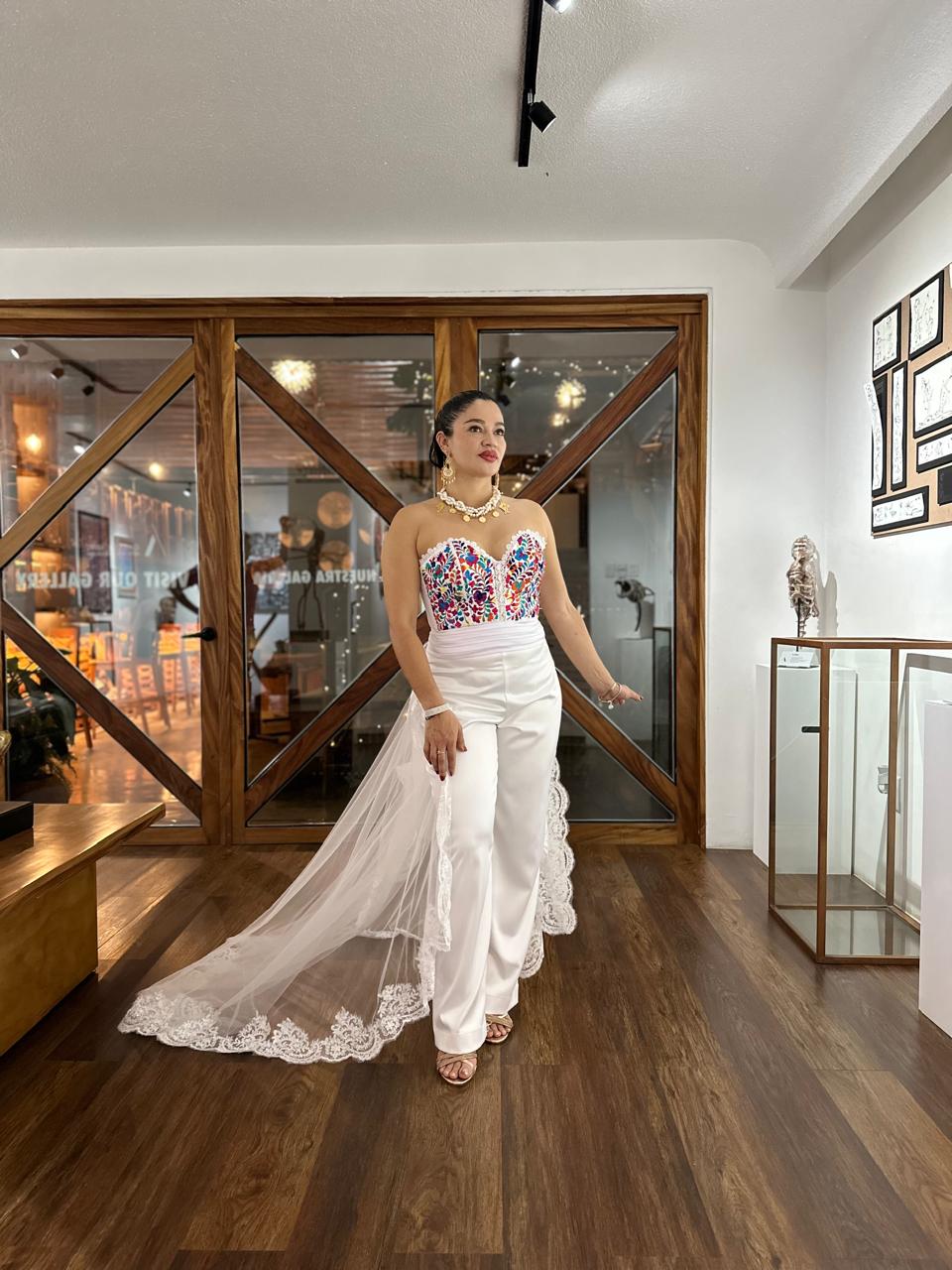 Corse bordado a mano en tonos multicolor con hilos de seda por mujeres artesanas de San Antonino, Ocotlán, Oaxaca, ajustable al gusto con presillas, varillas y copas push-up.