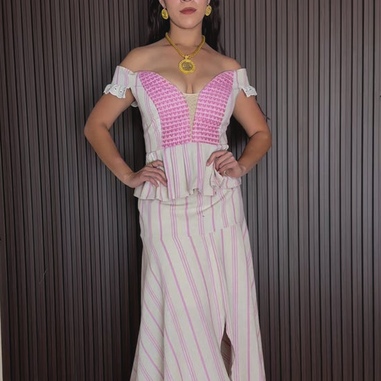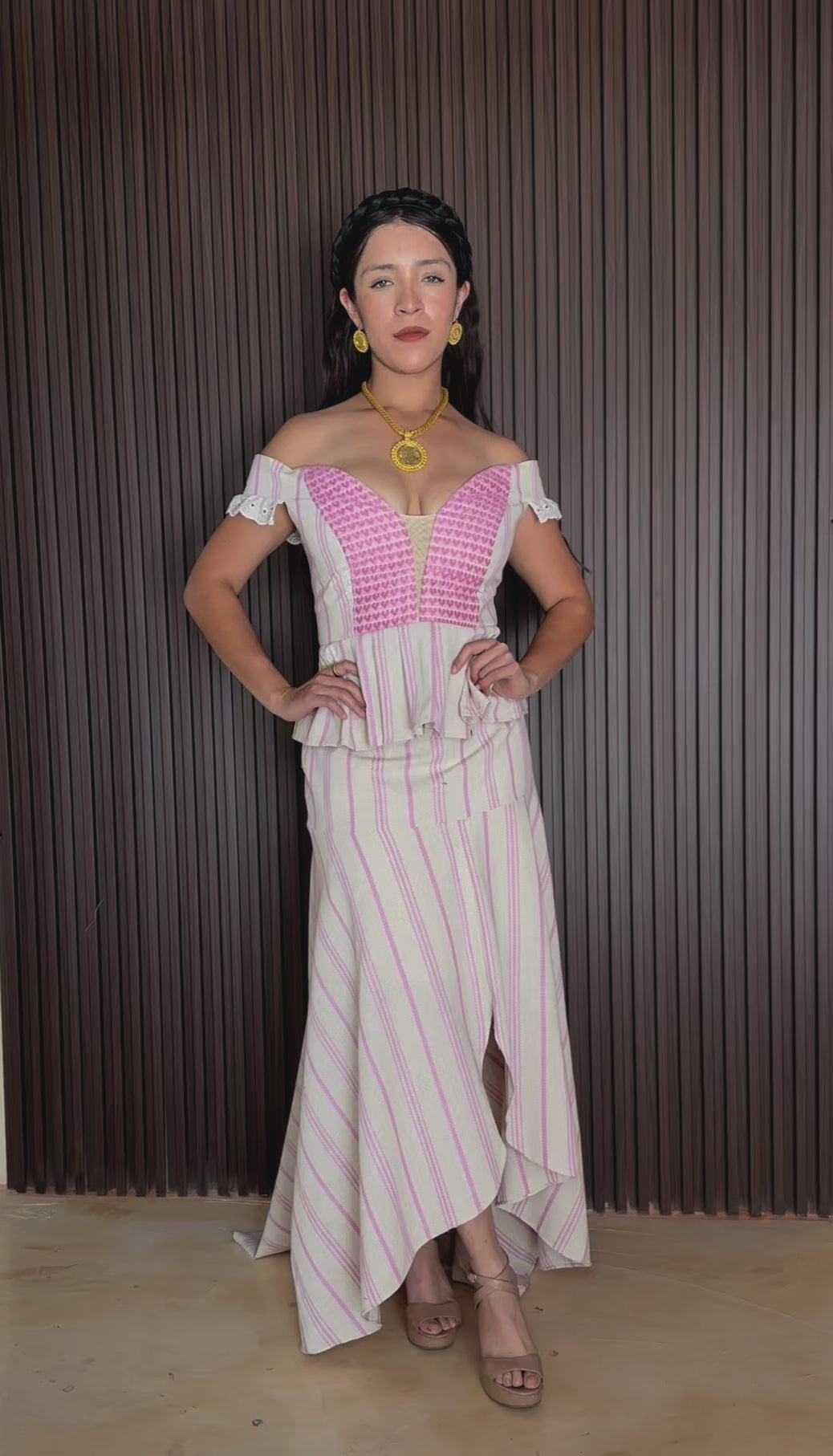 Conjunto corazones, elaborado con bordado a mano de San Vicente Coatlán y una bella tela de lino, fresca para esta temporada, en la parte de atrás es de cierre.