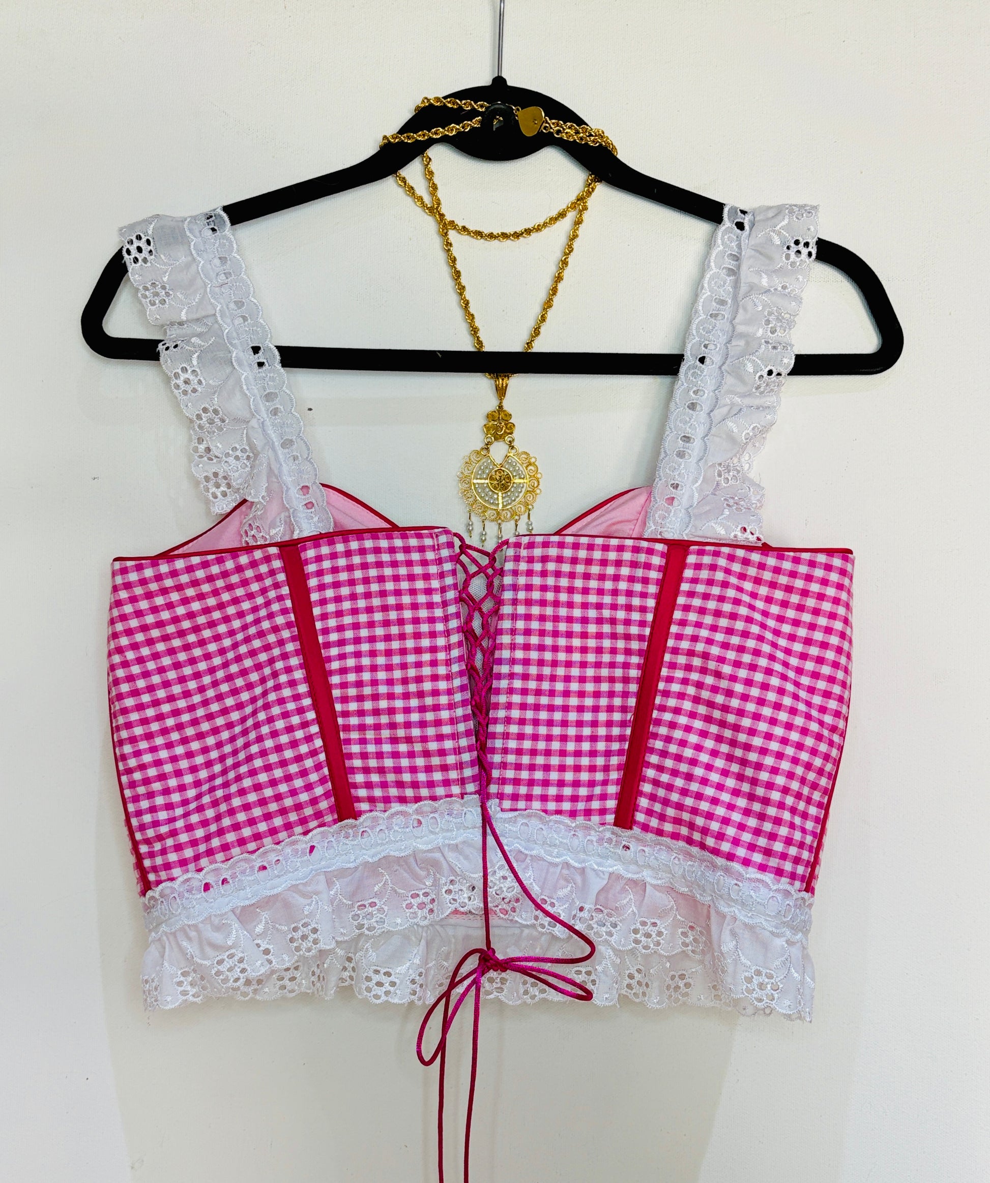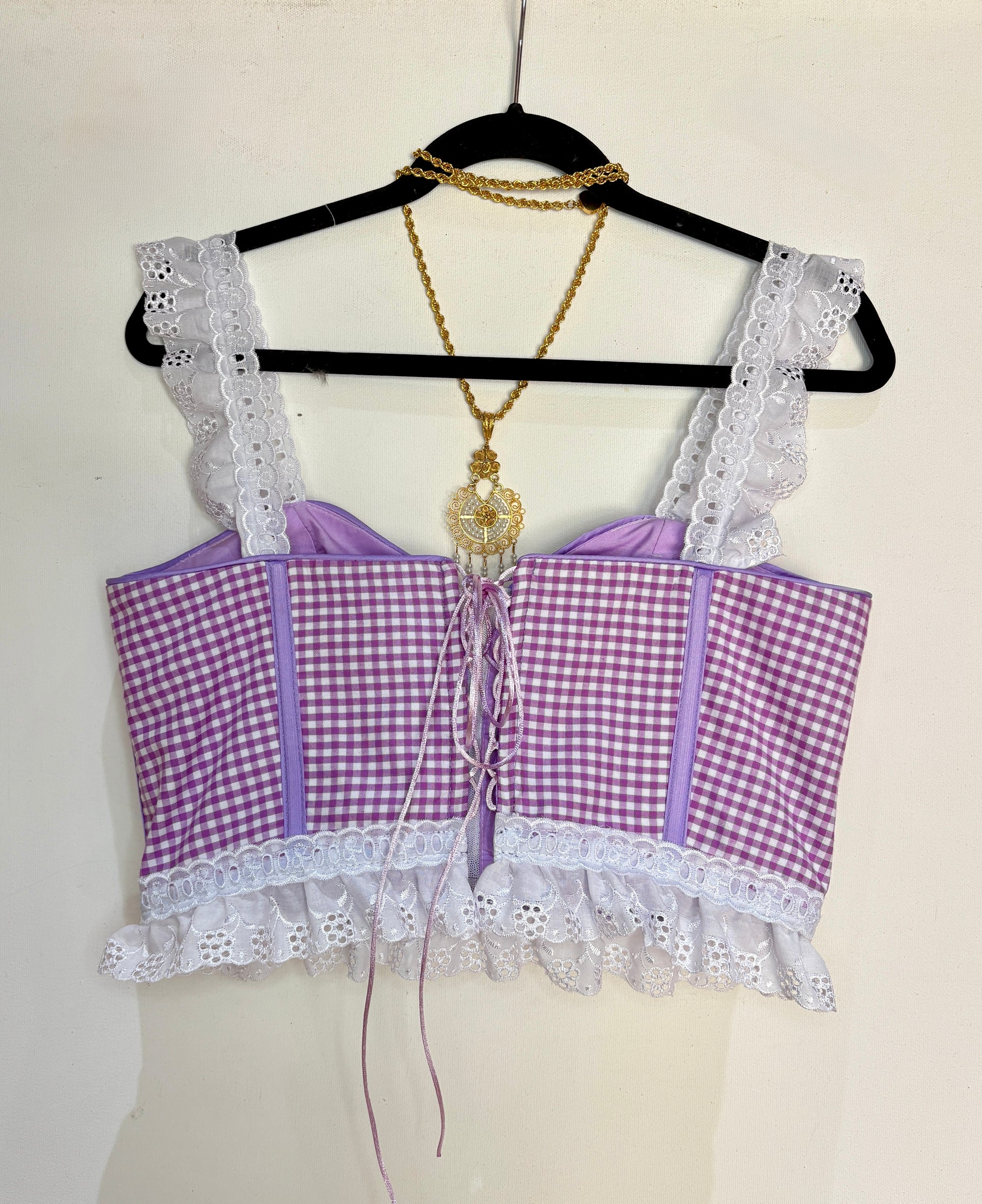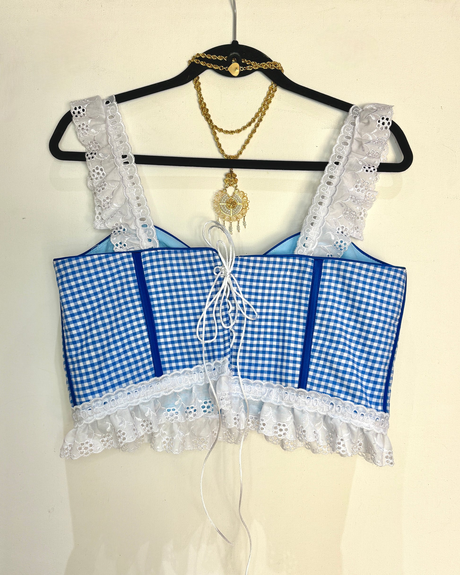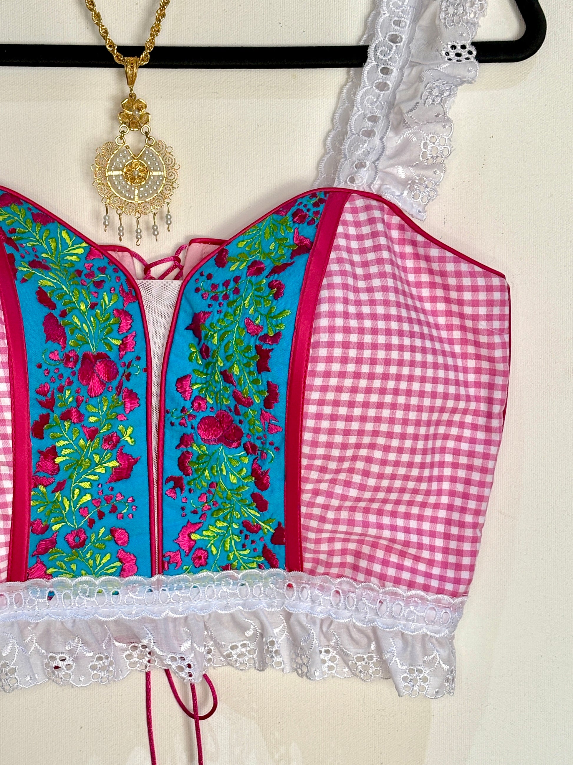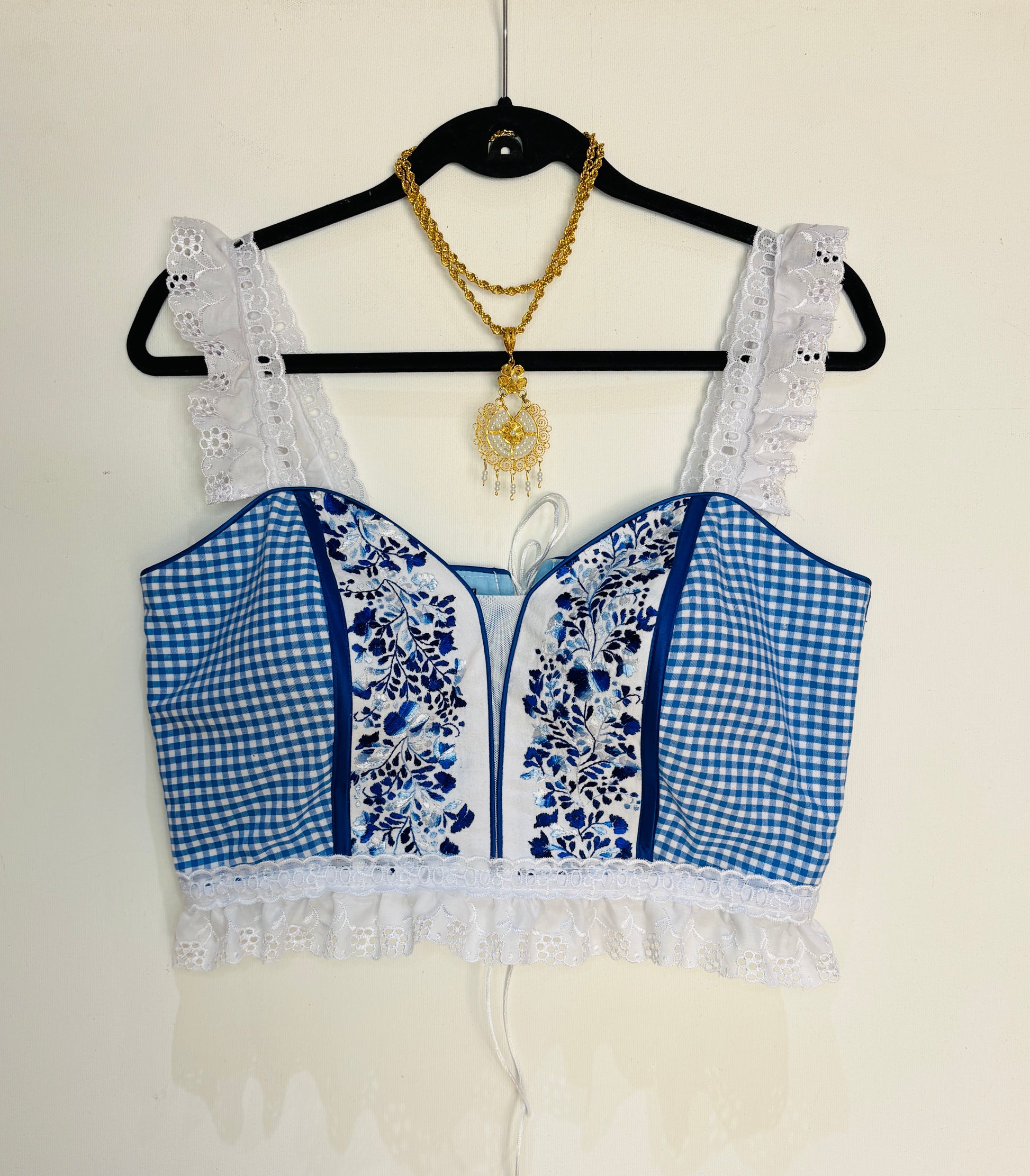 Corsé de algodón, elaborado con un bello bordado de San Antonino a mano con hilos de seda, y algodón bordado para un olancito en la parter baja y tirantes.