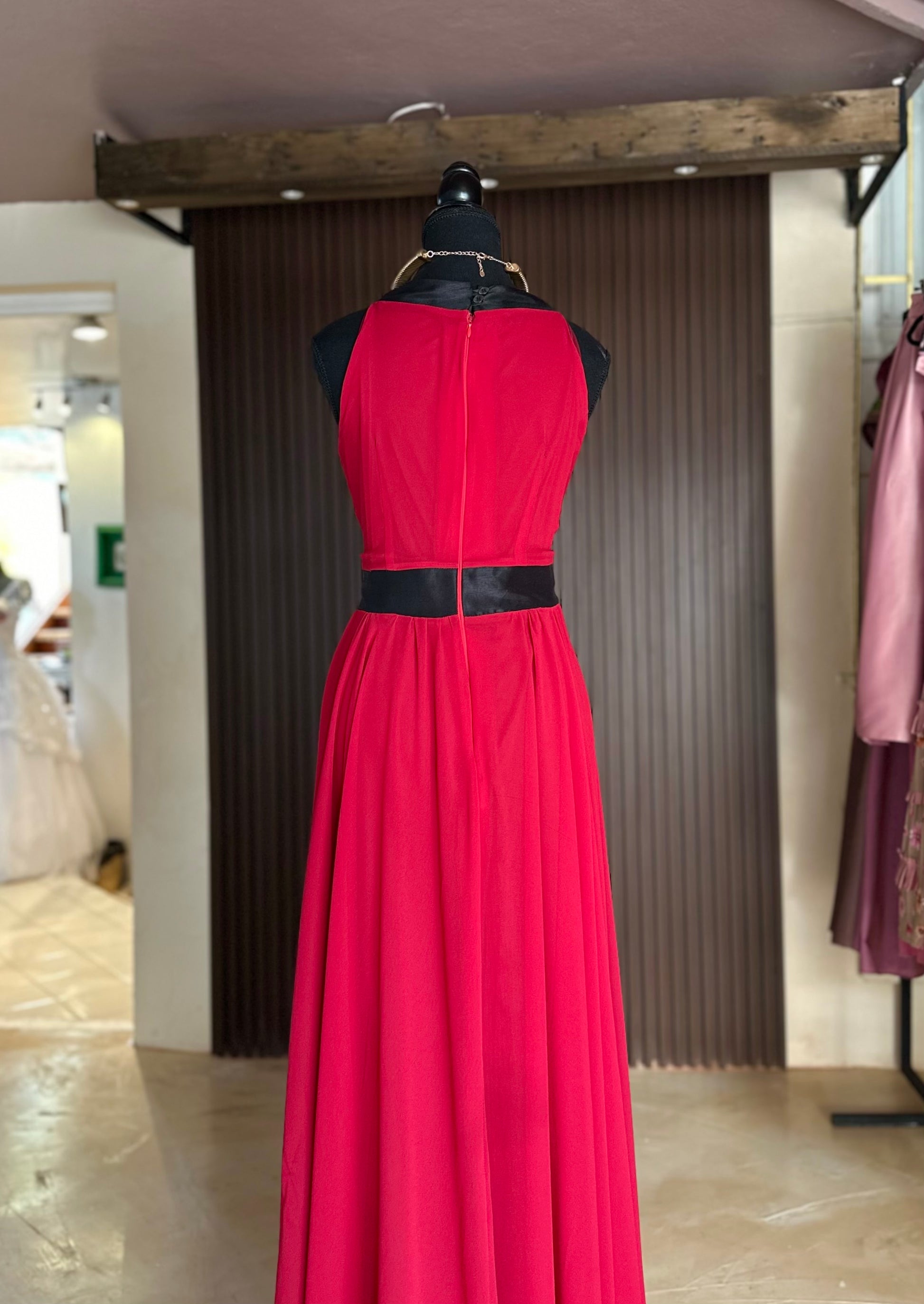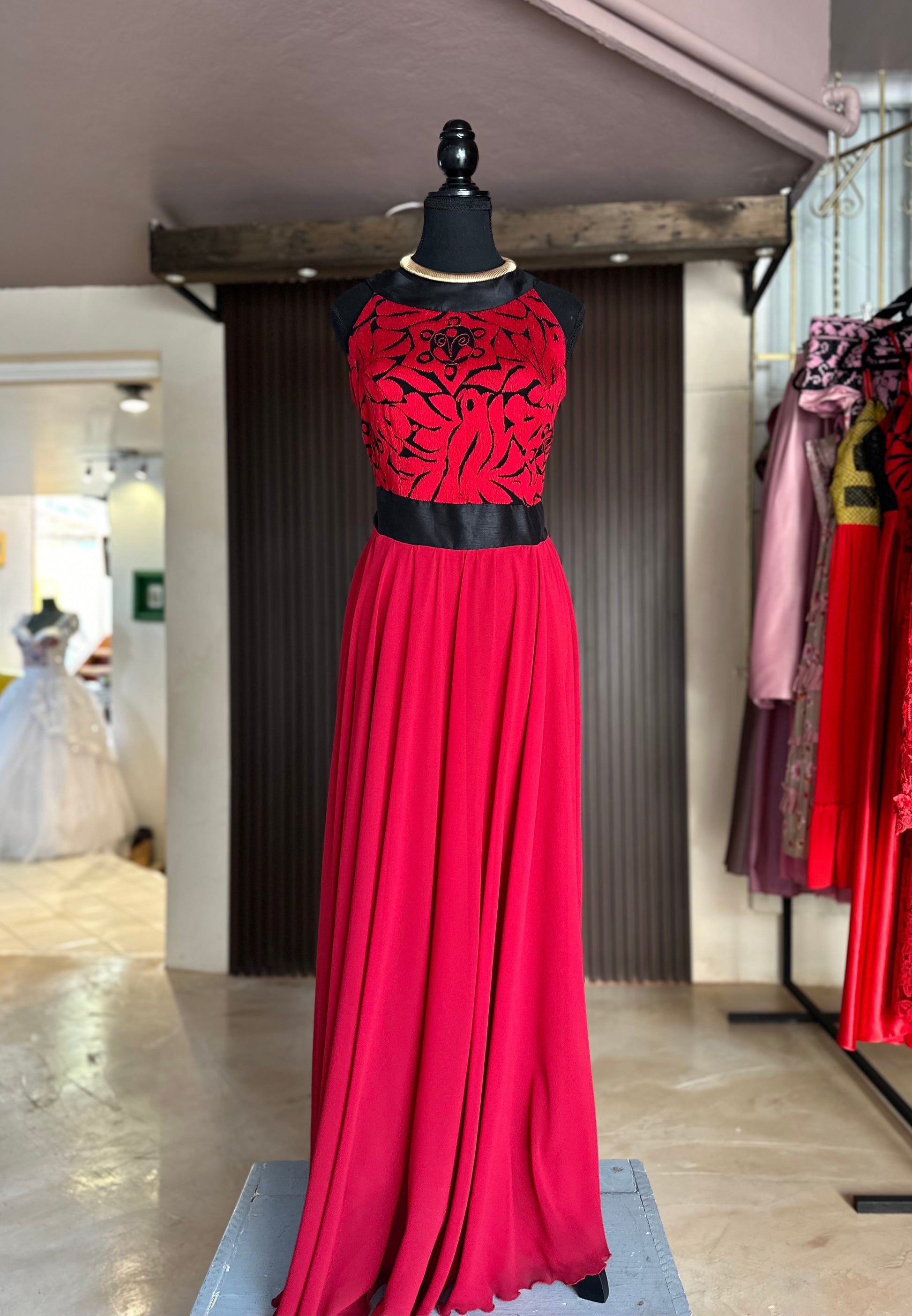 Vestido halter de gasa, tela ligera en color vino, con un bello bordado de Jalapa de Diaz, pretina en color negro para hacer cintura, y cierre en la parte de atrás