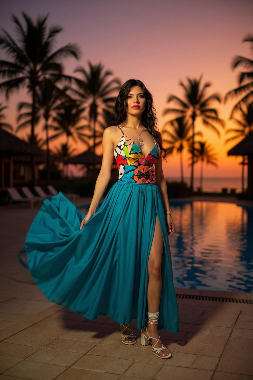 Déjate envolver por la frescura y la alegría del este vestido. Su corset con bordado multicolor de Jalapa de Diaz, se une a una falda amplia en azul jade que fluye con cada paso, evocando el movimiento del mar bajo la luz del amanecer.