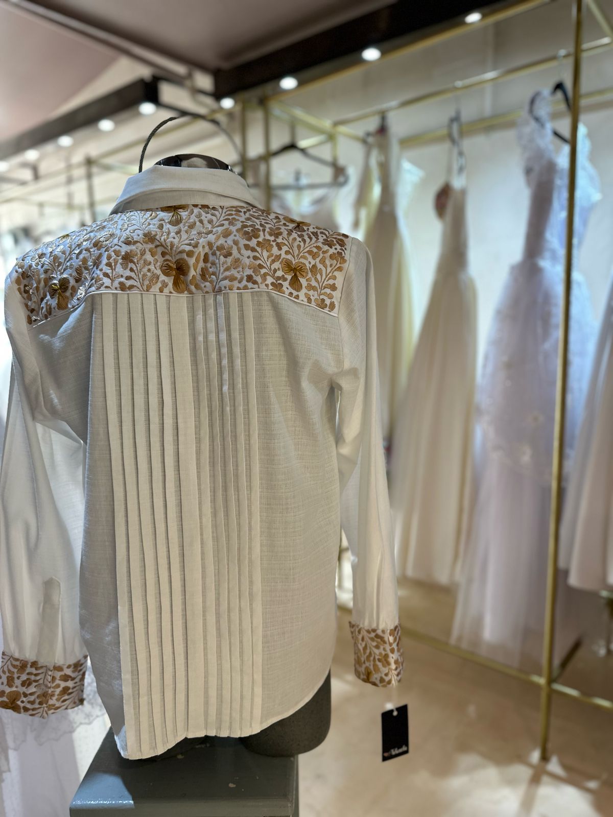 Guayabera de lino algodón con el mismo bordado del vestido para hacer duo