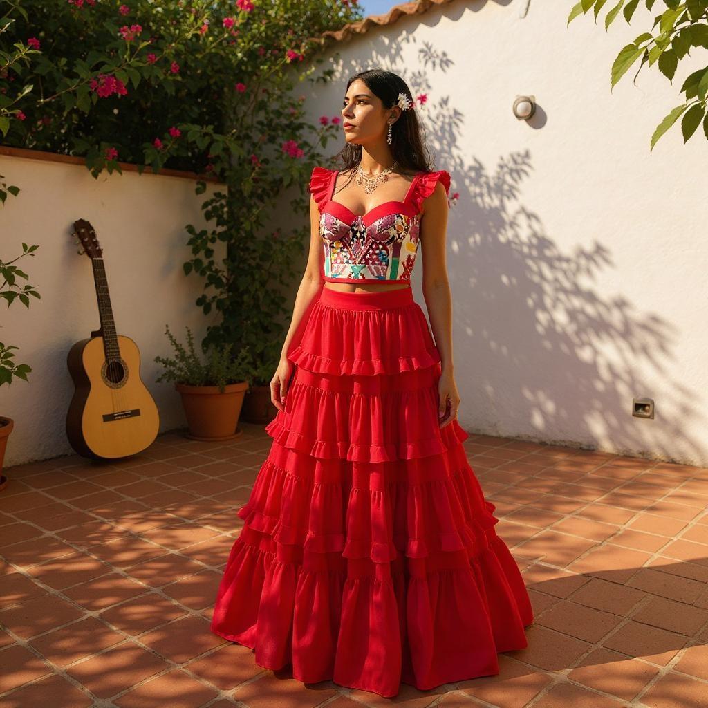 “Rojo que late con tu fuerza, bordado que susurra tu historia. Un vestido que danza al viento y celebra el arte de nuestras manos”.